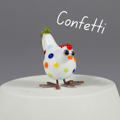 Handmade Glass Mini Chicken - Confetti