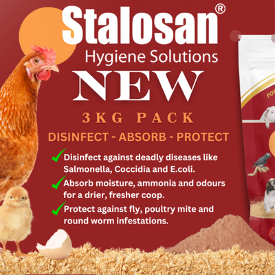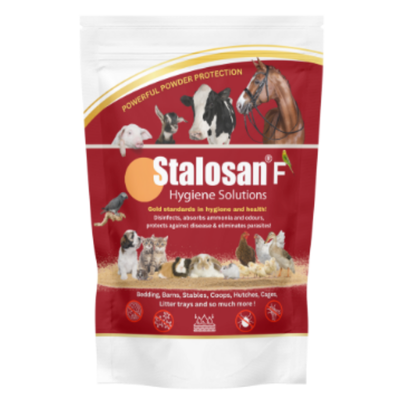 Stalosan F is a powerful shed hygiene powder designed to improve the living conditions inside poultry housing. It works by drying damp litter, lowering the pH of bedding and helping reduce the number of harmful pathogens that build up in chicken coops and poultry sheds.
